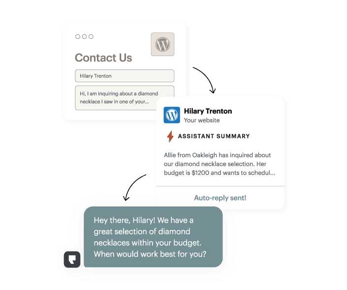 When someone fills out your “Contact Us” form, we’ll send them a text to kick off the conversation, so you can convert that lead quicker and easier.