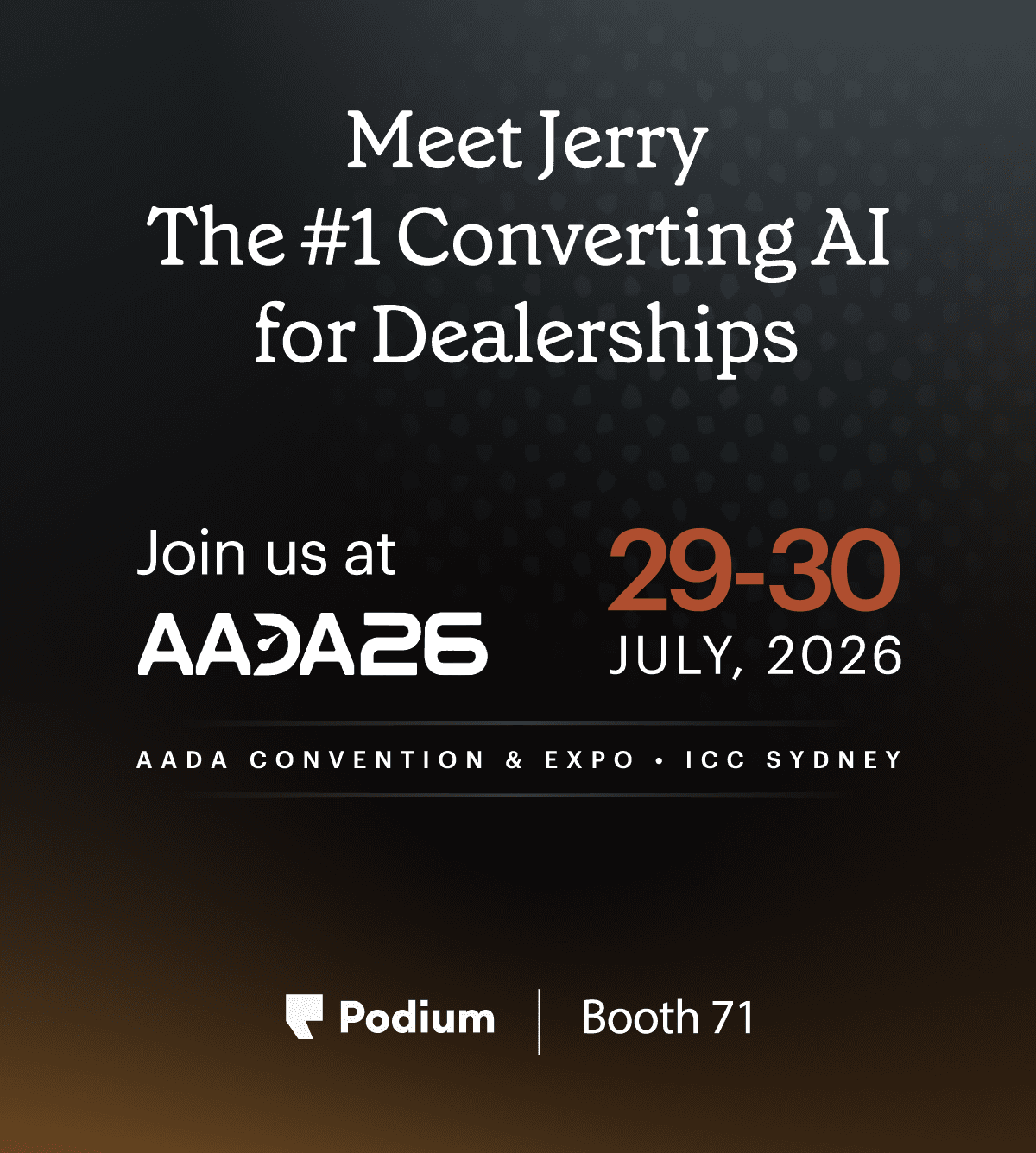 Stop by, meet the team and see Jerry in action—your fully customisable AI employee for sales, service, and every customer conversation. From handling leads across every source to booking test drives and service bookings, Jerry adapts to your dealership’s playbooks, tone, and processes in real time. Experience complete transparency and control with AI Studio, and discover how dealerships are driving more revenue, capturing every opportunity, and delivering better customer experiences with an AI employee built to reflect their brand.